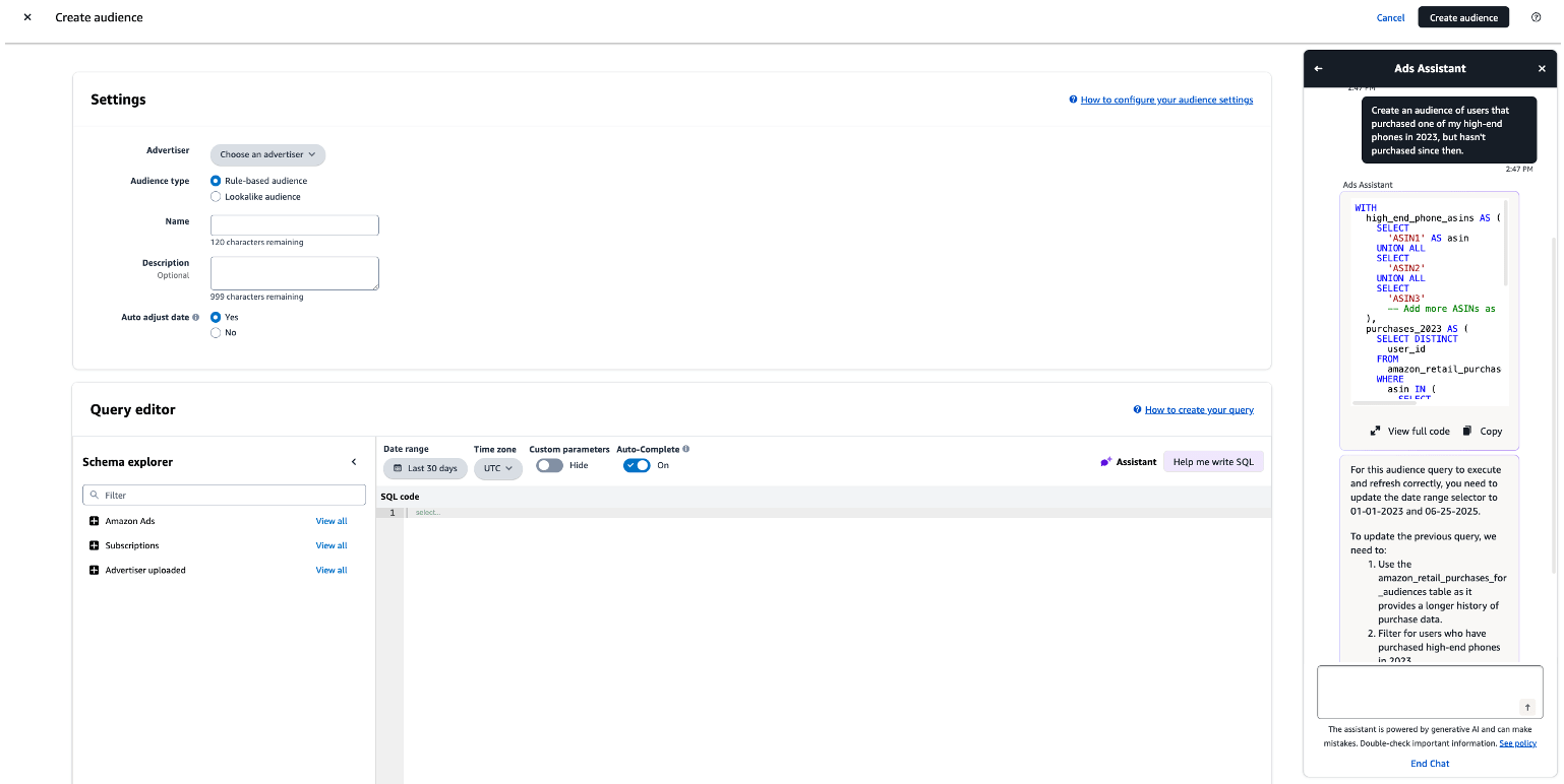 La herramienta permite a los usuarios crear consultas SQL para segmentos de audiencia personalizados a partir de instrucciones en lenguaje natural, así como recibir respuestas instantáneas a preguntas sobre las funcionalidades de AMC. Esta integración busca optimizar el flujo de trabajo, combinando la generación de audiencias y la orientación sobre productos en un único entorno conversacional.