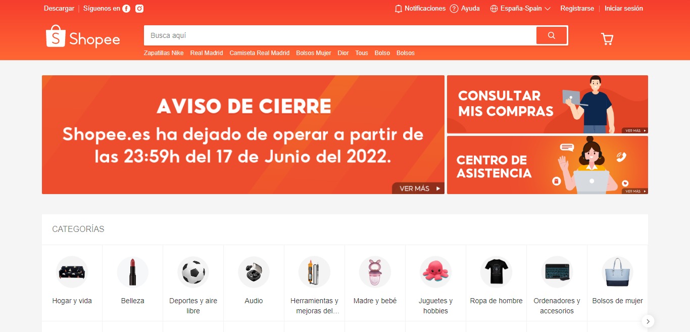 Ocho meses ha durado la aventura de Shopee en España. El marketplace de origen singapurense confirma su marcha del mercado español. En un comunicado que se puede leer desde su propia web anuncian lo siguiente: “Shopee.es dejará de operar a partir de las 23:59 horas del 17 de junio del 2022.”
