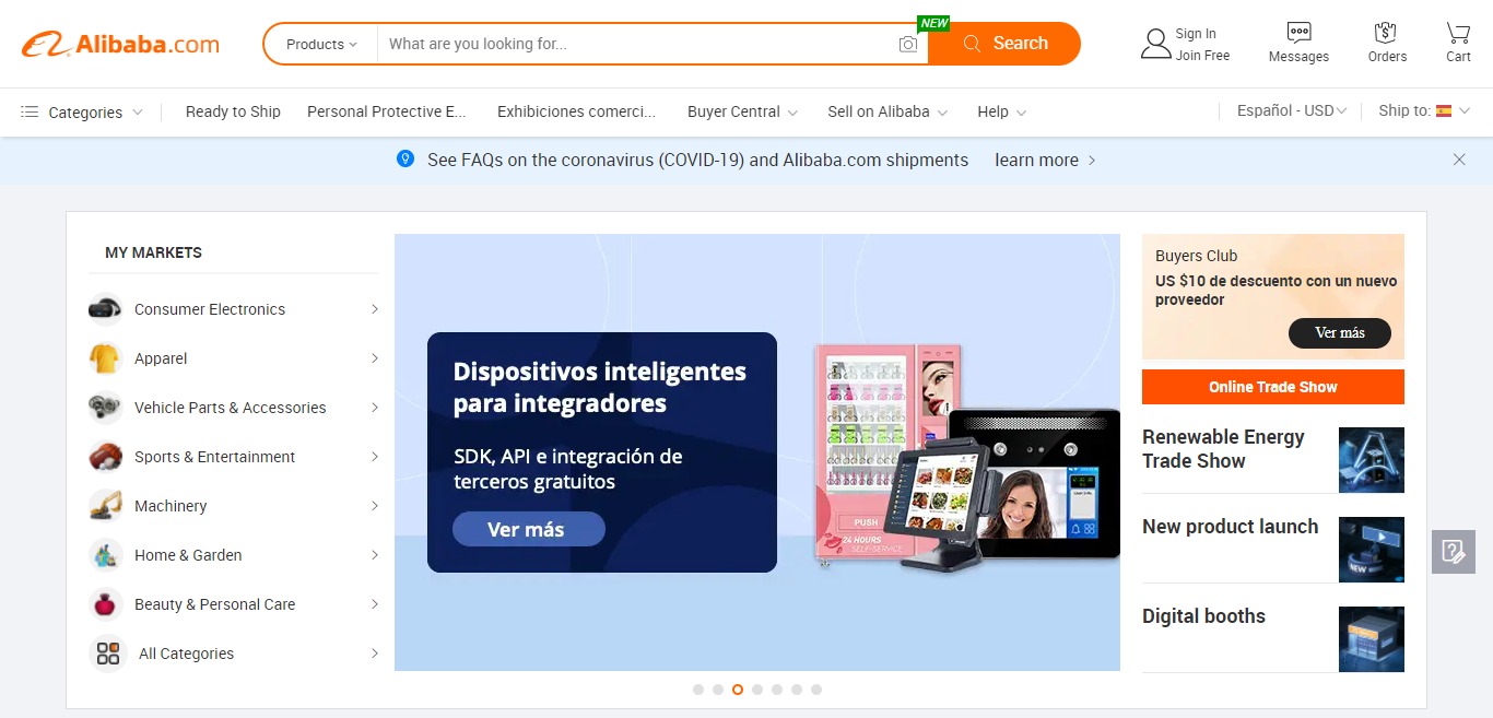 El marketplace chino acumula más de 96 millones de empresas importadoras registradas procedentes de 190 países. Es, además, uno de los referentes mundiales en las transacciones comerciales entre empresas.