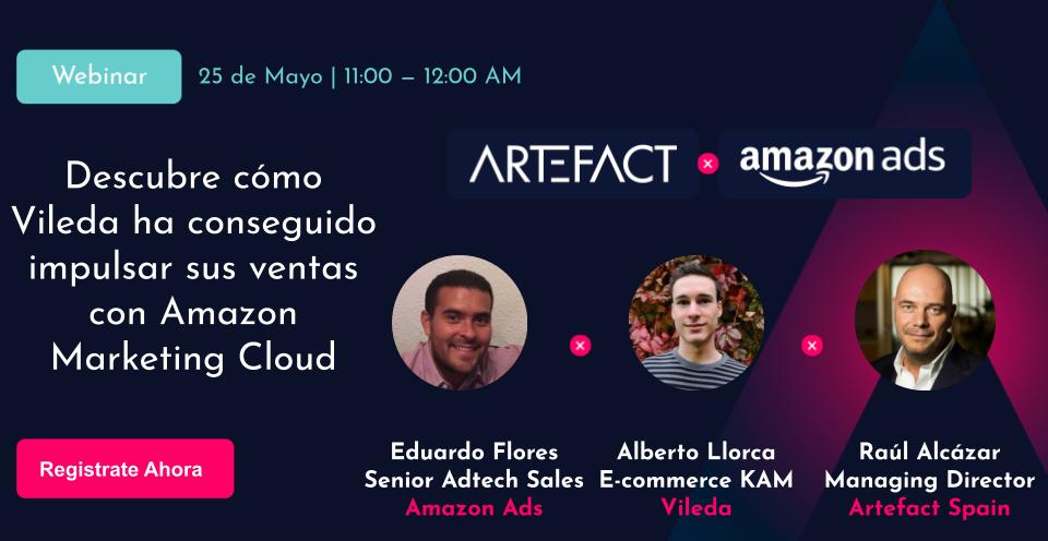 De la mano de Amazon y Vileda, Artefact España tiene el placer de invitarte a un webinar en el que se podrán conocer todas las ventajas que ofrece Amazon Marketing Cloud, así como las palancas que se pueden utilizar para mejorar las ventas Online. Inscríbete a través de este enlace.