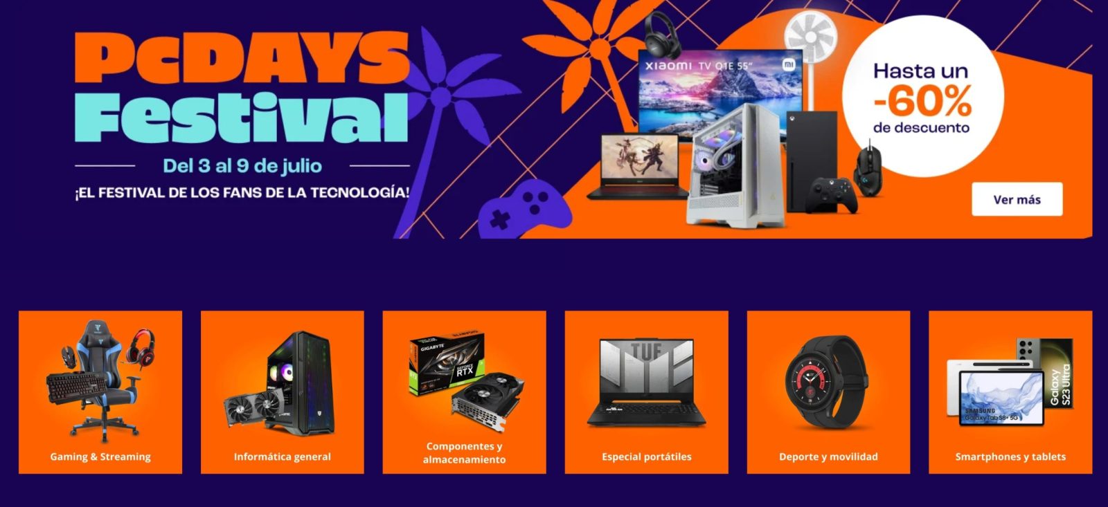 Desde el 3 al 9 de julio, PcComponentes lanza una nueva edición estival del PcDays Festival. Los clientes del marketplace podrán disfrutar de más de 1.500 ofertas en productos tecnológicos de marcas líderes y propias de la firma.