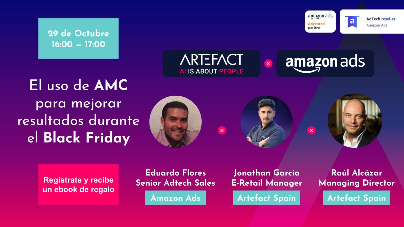 ¿Quieres mejorar tus ventas en el evento de compras más importante del año? Únete al webinar organizado por Artefact y Amazon Ads el próximo 29 de octubre y aprende cómo aprovechar AMC para mejorar tus resultados en Black Friday.